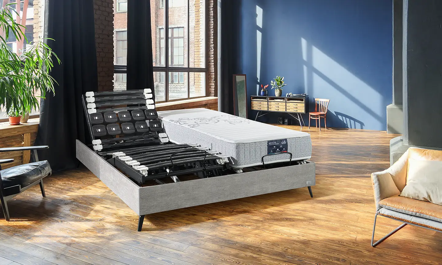 Depuis 1984, nous fabriquons l'ensemble de nos sommiers. Vous avez le choix parmi des sommiers fixes à lattes actives, un lit coffre avec un grand espace de rangement, des sommiers électriques conçus autour de technologie unique telle que Vline ou encore notre brevet Synchroflex.